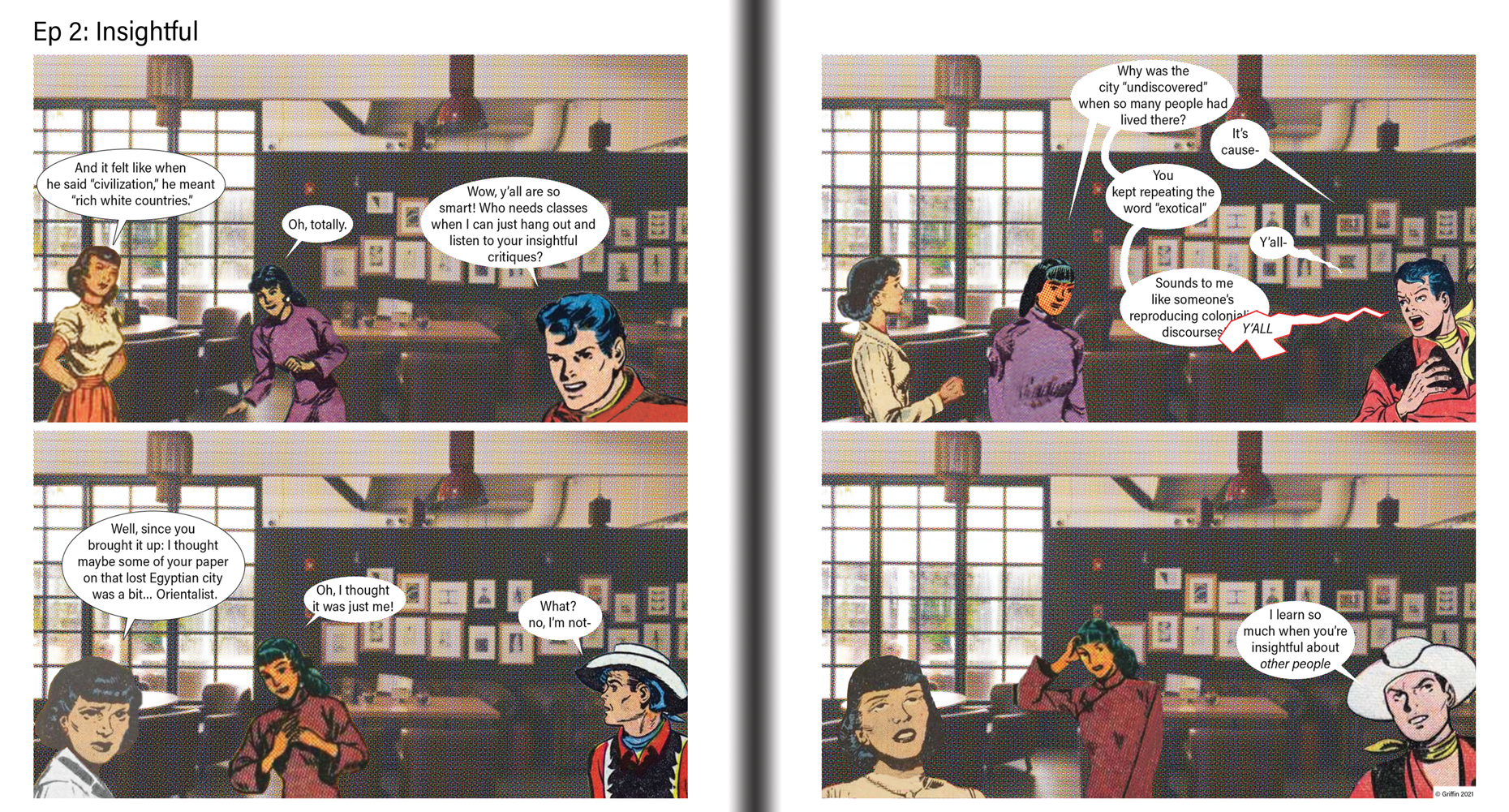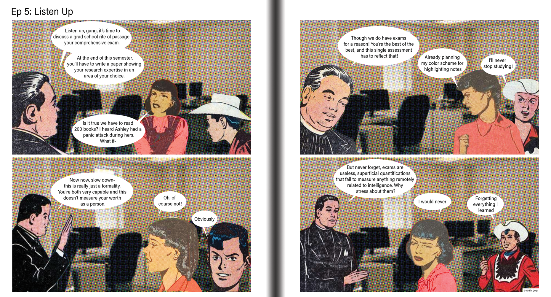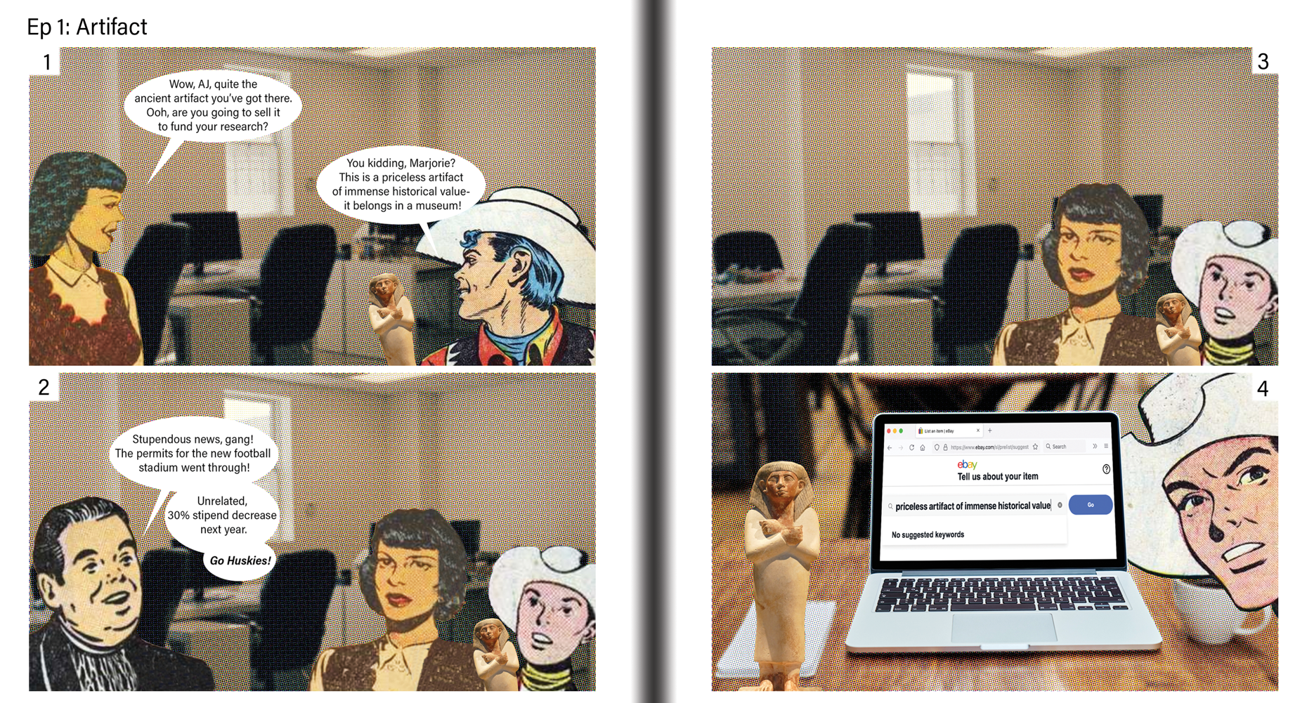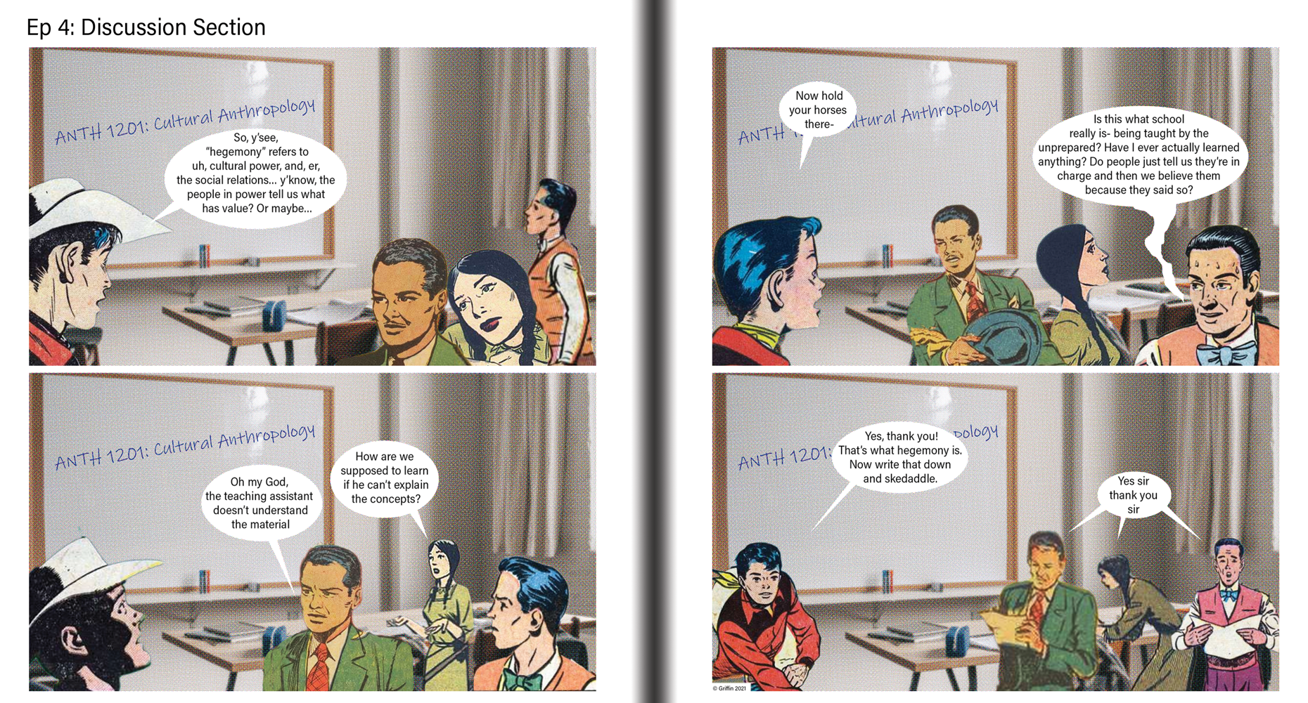 Intrepid adventurer, mediocre grad student! A 54-page collection of 4-panel comic strips that satirize grad school, adventure movies, capitalism, and everything in-between. Made using public domain comic art and photographs. By Matt Griffin.