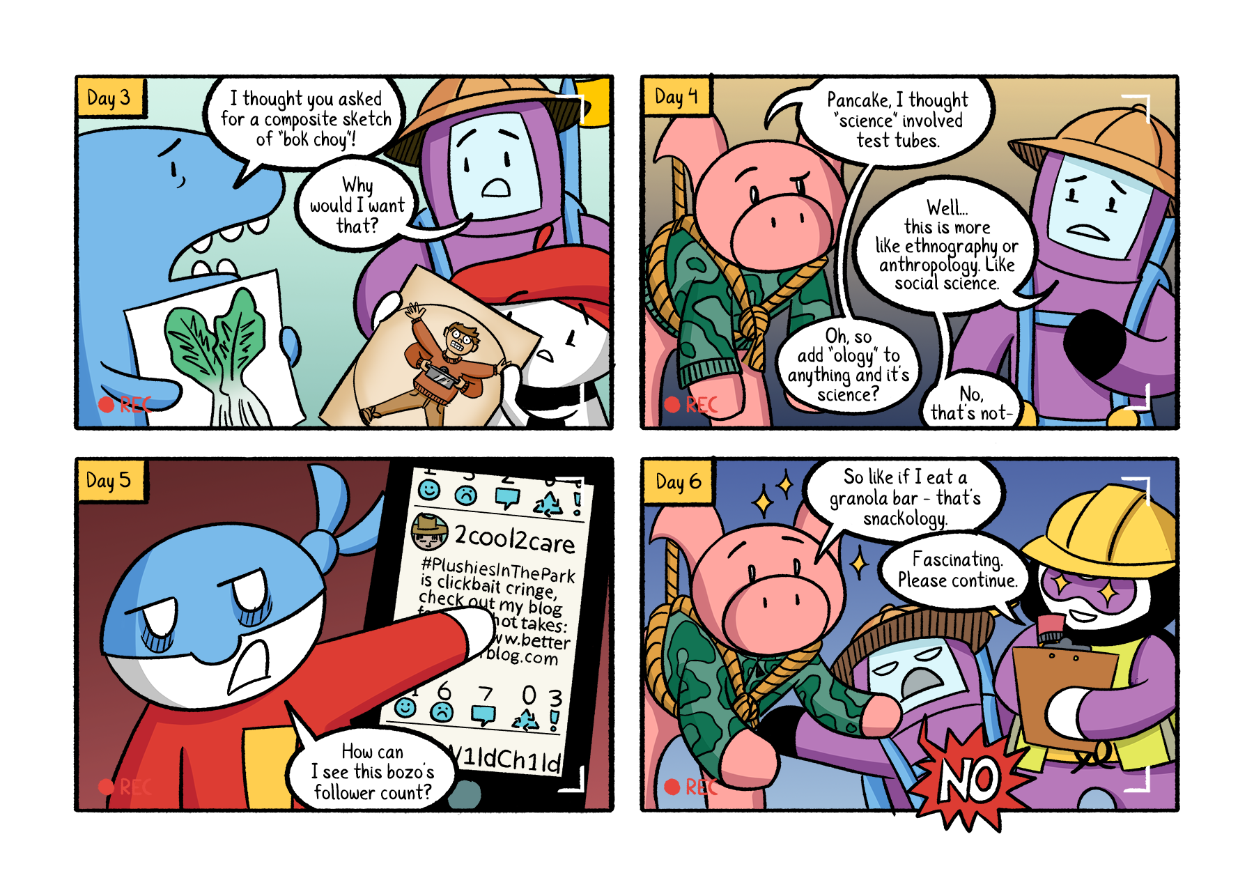 The absurd adventures of 6 chaotic stuffed animal friends! A 44-page comic containing 3 stories about building friendship through shared snacks, crazy discoveries, and squirrel shenanigans. By Anna Reishus and Matt Griffin.