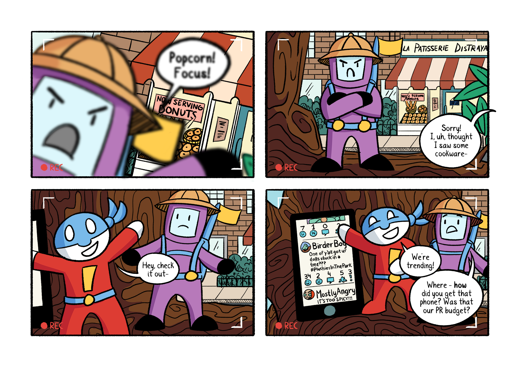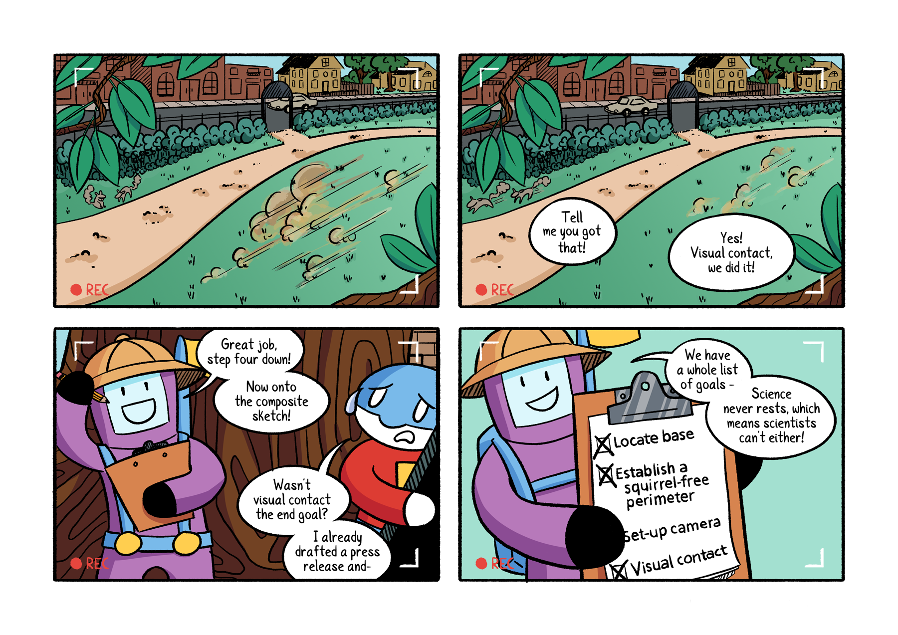 The absurd adventures of 6 chaotic stuffed animal friends! A 44-page comic containing 3 stories about building friendship through shared snacks, crazy discoveries, and squirrel shenanigans. By Anna Reishus and Matt Griffin.